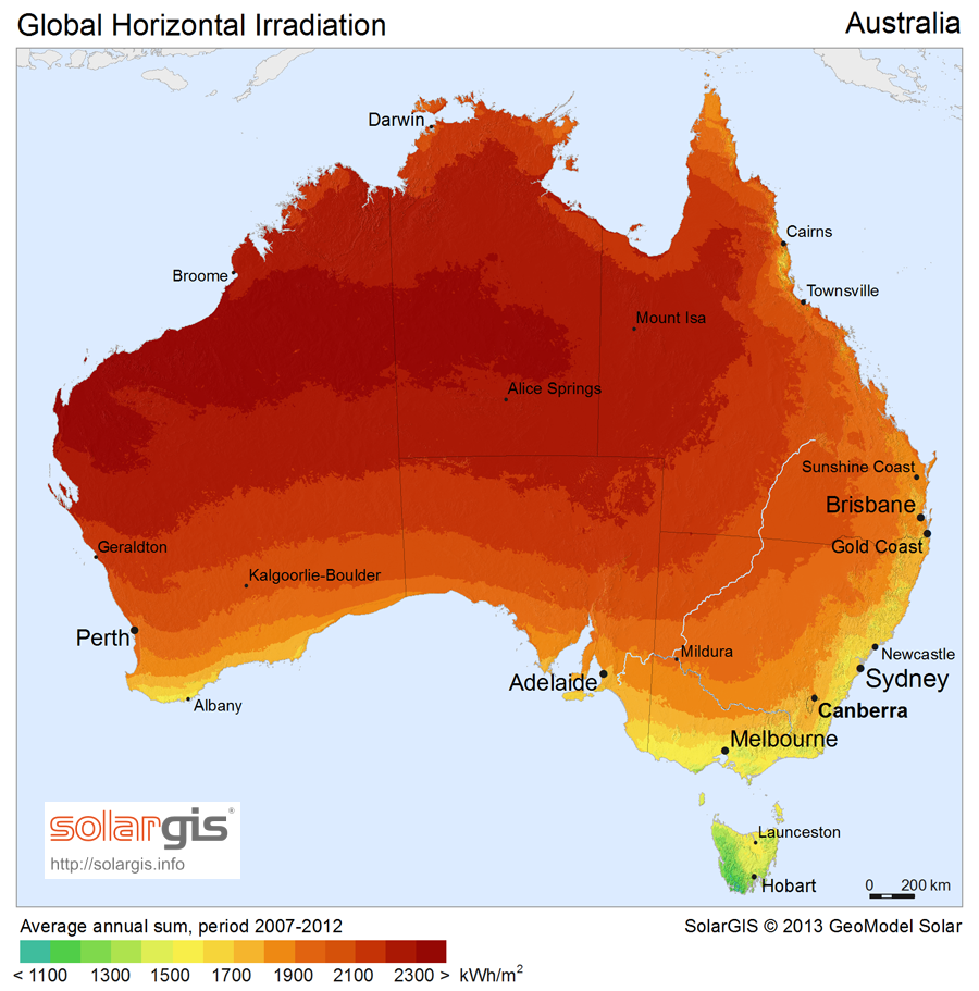 É certo que, sem irradiação solar, a vida seria impossível na Terra. Mas a luminosidade e o calor excessivos devem ser apreciados com moderação. Níveis muito elevados de irradiação solar podem causar problemas ambientais, como queimadas e desertificação, e também problemas de saúde, como câncer e envelhecimento precoce da pele. Veja abaixo vários mapas produzidos pelo SolarGIS mostrando os níveis médios de irradiação solar em todos os continentes do planeta. Neste e nos próximos verões, se você vive numa das regiões mais alaranjadas ou avermelhadas do mapa, fique atento e não esqueça de usar protetor solar. Saiba também que a sua região tem muito potencial para a produção de energia solar e que seria ótimo se esse potencial fosse aproveitado.