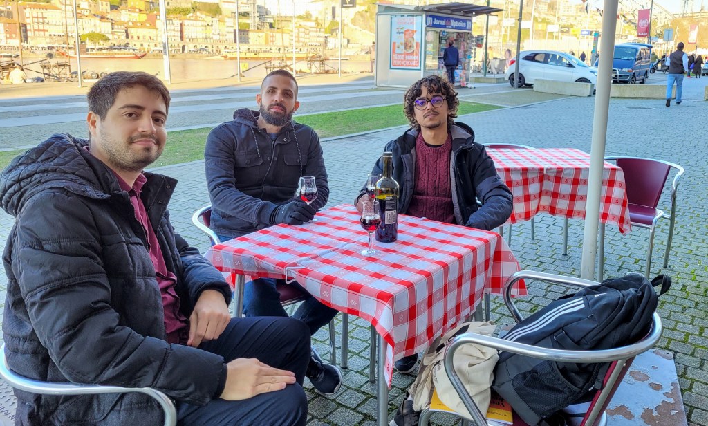 Saímos juntos quase todas as noites após o Congresso e conversamos bastante sobre nossas pesquisas e aspirações acadêmicas. Vivemos um pouco da boemia portuense e constatamos que a cidade do Porto, na verdade, são duas cidades: à noite ela se transforma. À beira do rio Douro, tomamos bons e autênticos vinhos do Porto para esquentar as orelhas e, como é de lei, uma cerveja “pra lavar”.